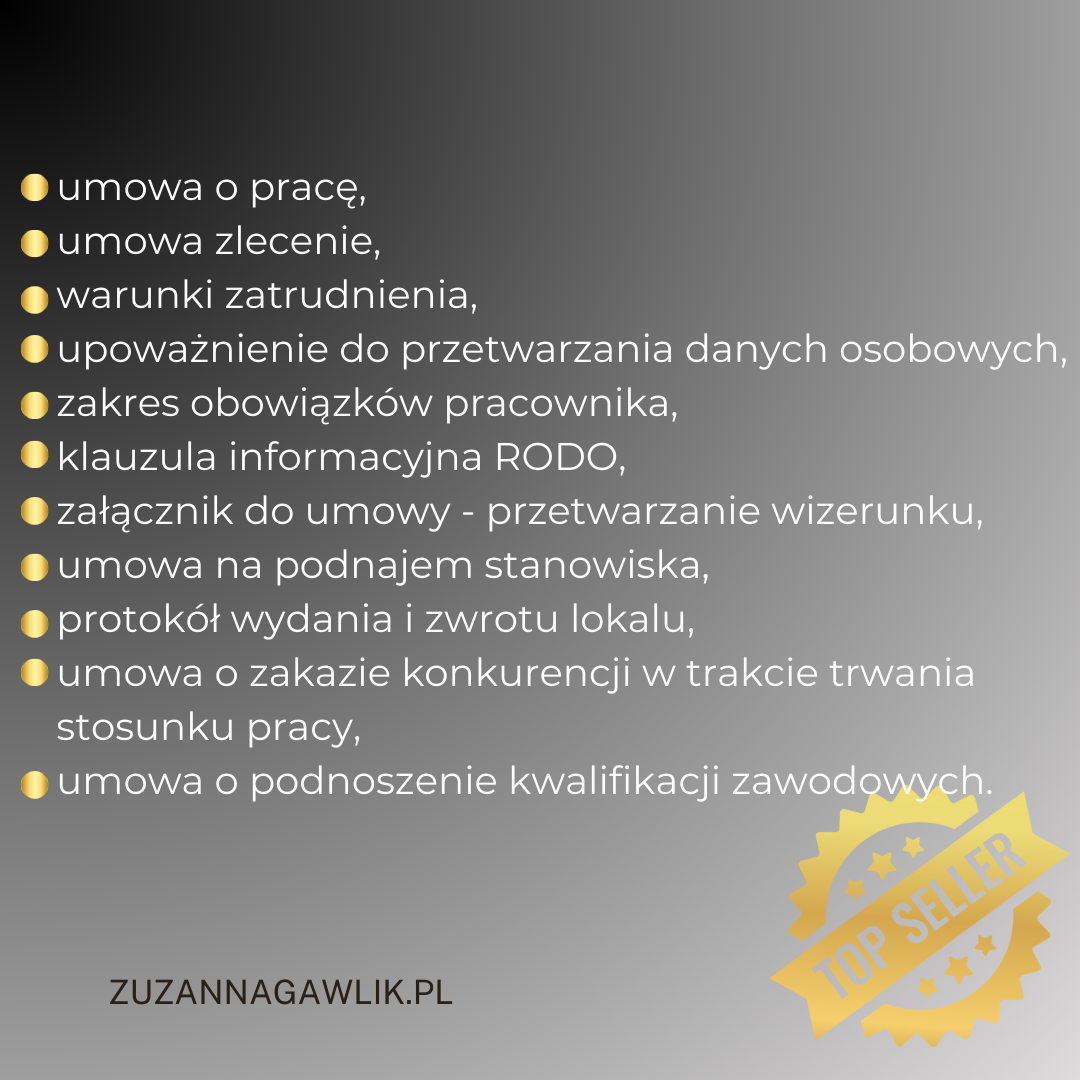 W skład pakietu wchodzą wzory umów takich jak: